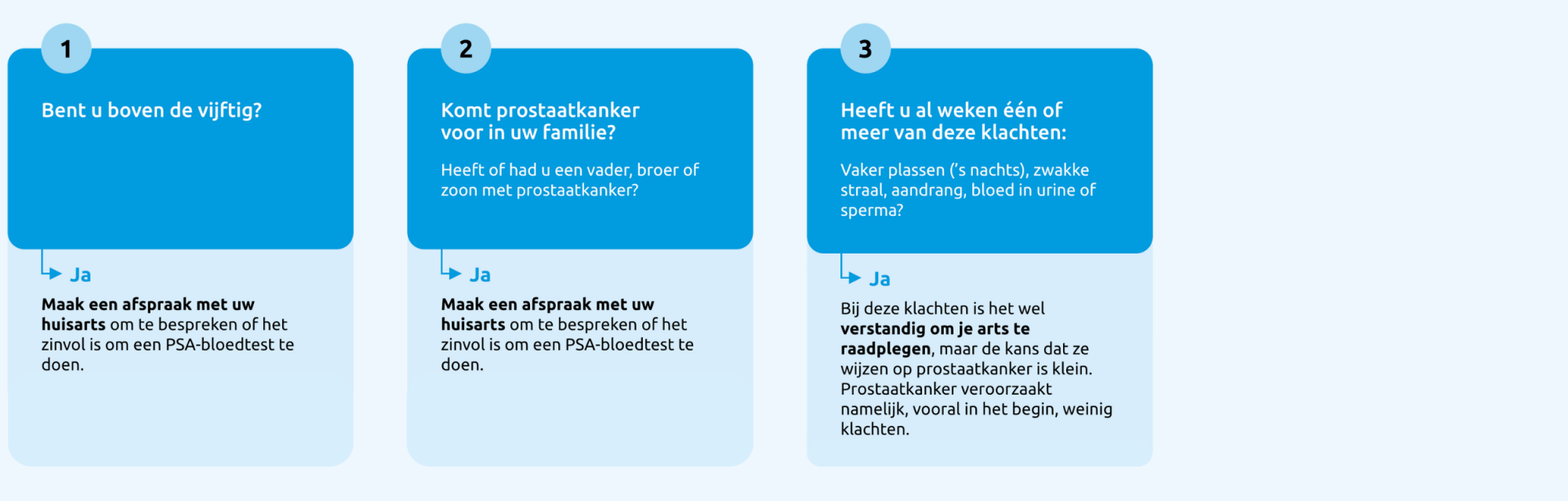 Heeft u drie keer 'nee' geantwoord? Goed nieuws, u loopt op dit moment geen verhoogd risico op prostaatkanker.